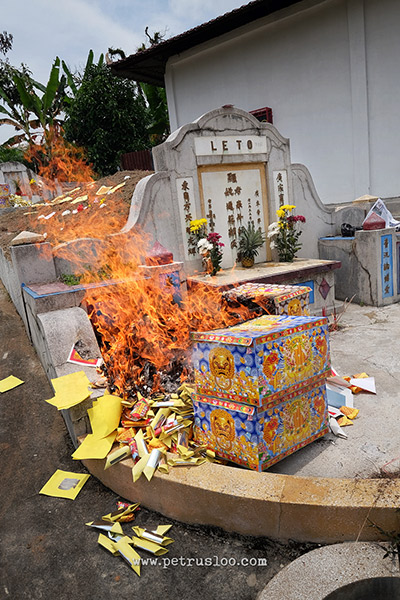 Mengunjungi makam leluhur yang biasa disebut masyarakat Tionghua Indonesia bukanlah hanya ritual sembahyang semata. Tapi merupakan wujud bakti anak terhadap orang tua atau terhadap leluhurnya. Sebagian mempercayainya sebagai berbalas budi kepada leluhur. Sehingga disaat Cheng Beng akan ada berbagai jenis makanan, kue, buah – buahan dan lain – lain yang disajikan didepan makam dan juga pembakaran kertas sembahyang serta barang kebutuhan sehari – hari yang terbuat dari kertas.