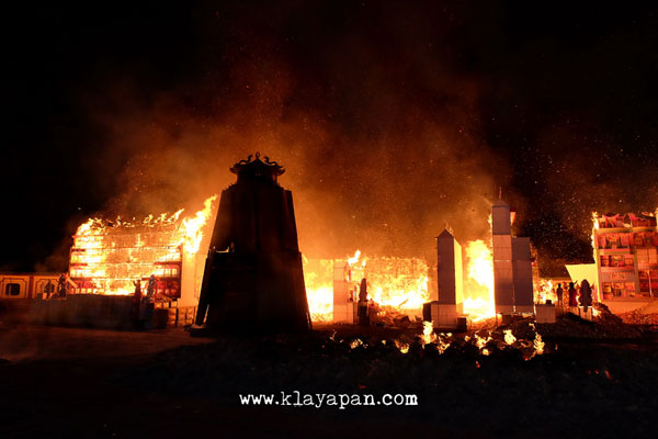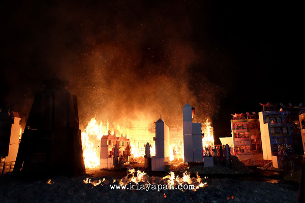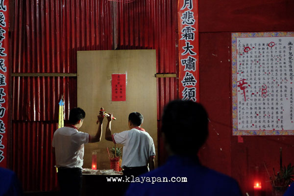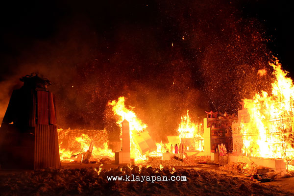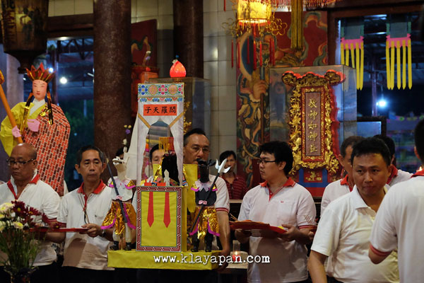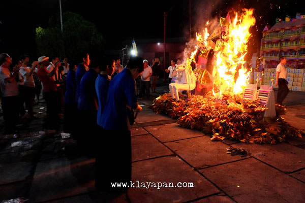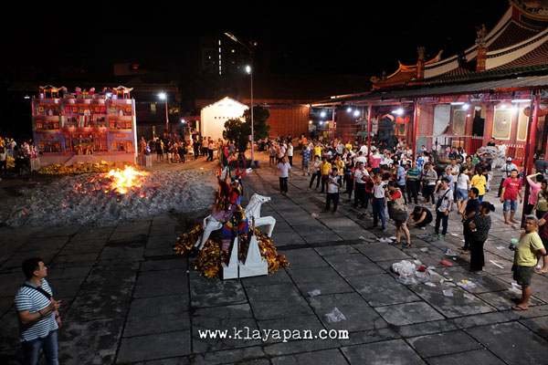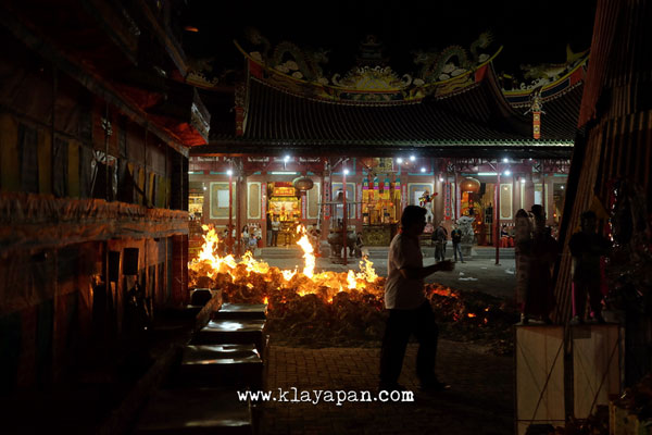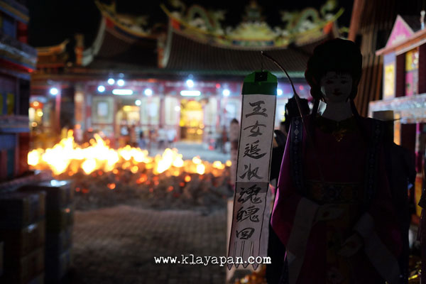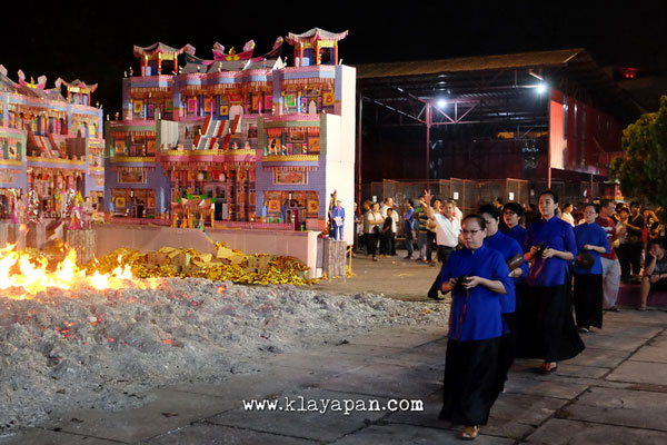 Tidak lama kemudian, ritual sembahyang yang pun dilakukan di dalam vihara dan ada patung dewa kertas yang dibawa keluar di lapangan untuk dikumpulkan disatu tempat. Kemudian para pelaksanaan kegitan berkeliling sambil membaca doa. Setelah itu secara resmi api mulai dinyalakan.