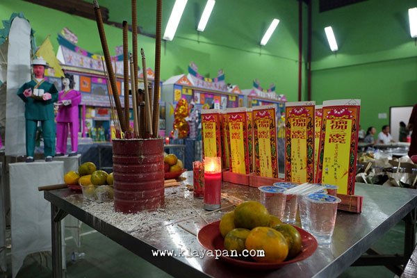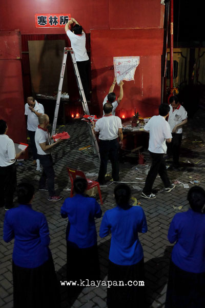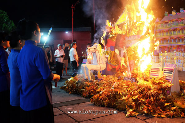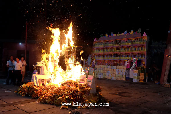 Panitia sibuk memindahkan replika rumah, apartemen, mobil, pembantu rumah tangga, dan lain – lain yang terbuat dari kertas kelapangan terbuka depan vihara. Menurut warga yang hadir, tahun ini lebih banyak dari tahun lalu umat yang memberikan persembahan. Jadinya yang mau dibakar cukup banyak memadati lapangan vihara. Proses perpindahan dan penyusunan berlangsung sampai pukul 24.00 lewat.