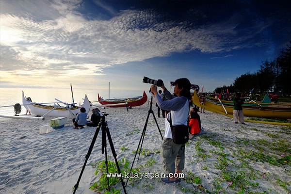 Tiba di Pantai Serdang, hari belum terang. Namun sudah mulai kelihatan titik cahaya yang muncul di perbatasan laut dengan langit dari pandangan kita ke laut lepas. Semuanya menyebar di sekitar pantai mencari titik spot masing-masing. Titik spot itu sangat penting untuk mentukan hasil foto yang didapat.